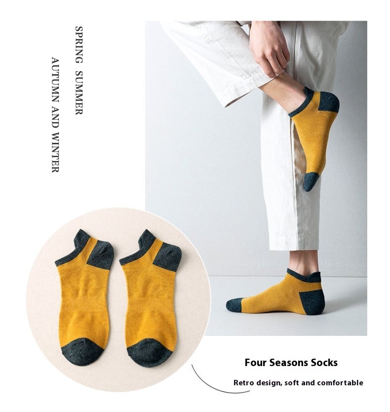Combed Cotton Bottom Sweat-absorbing Deodorant Anti-ankle Socks Low-cut Men’s Retro Waist