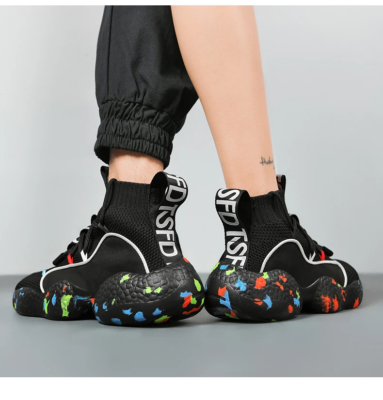 Men Sneakers Summer Fashion Running Shoes Women’s shoes Sock Outdoor Breathable Men Vulcanize Shoes Flat Soft tennis Shoes 47
